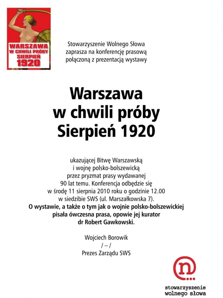 Z okazji 90. rocznicy Bitwy Warszawskiej Stowarzyszenie przygotowało wystawę planszową "Warszawa w chwili próby - sierpień 1920". Przedstawiamy wybór plansz.